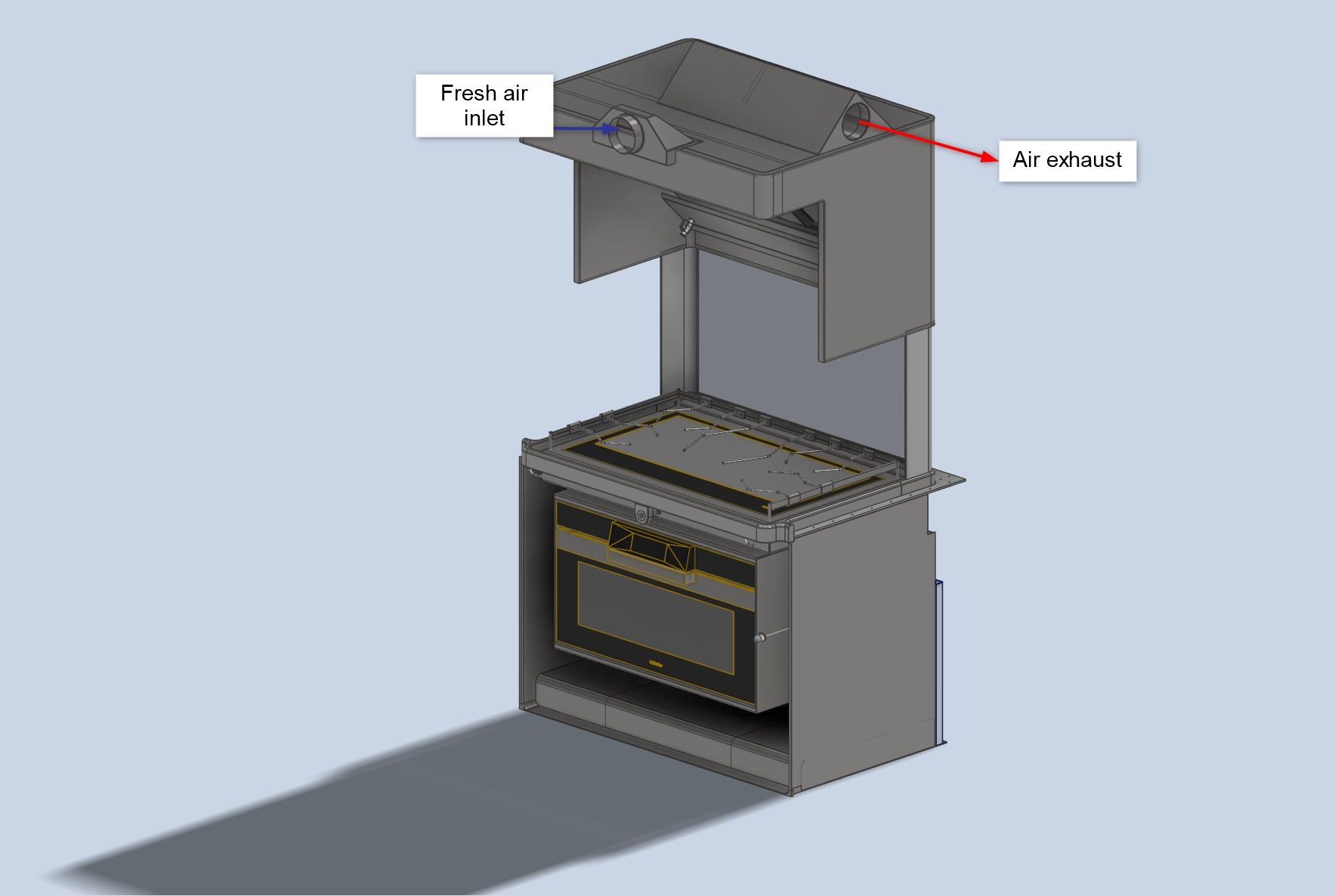 Rather than allowing the warm and humid air from the cooker to mix with the conditioned air in the rest of the galley, the team quickly decided that the best way forward was to extract the smallest amount of air as possible.