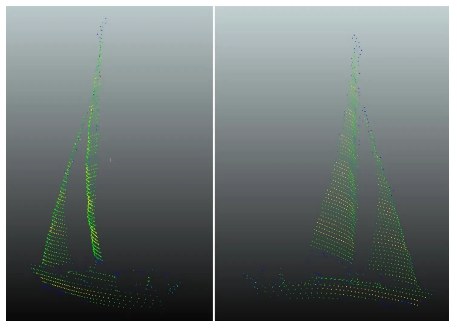 One of the main problems with LiDAR though is that “you don't have the edge of the sail” explains Bollweg. “But If the point cloud is dense enough you can almost calculate the edge of the sail”. Because of the way the laser pulses work sharp, clear edges are typically difficult for LiDAR to render, and the edges of the sail are a common visual cue for sailors to read their sails in addition to the telltales themselves.